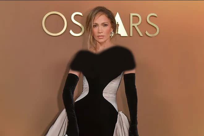 در این تصویر، لوپز با لباسی چشمگیر ظاهر می‌شود که طراحی جسورانه را با مد روز ترکیب می‌کند.